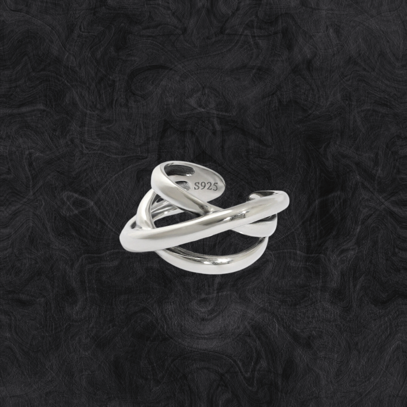 Une bague de triade, où l'éclat de l'argent montre.